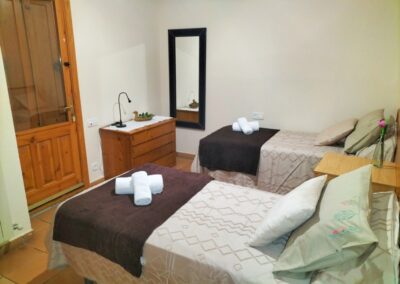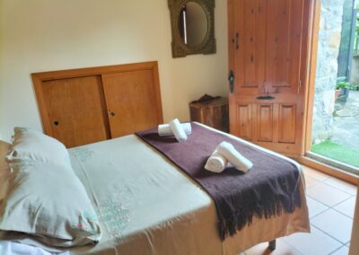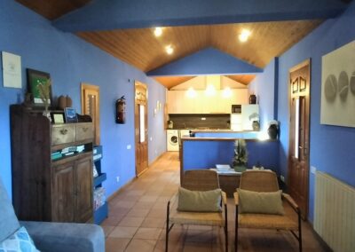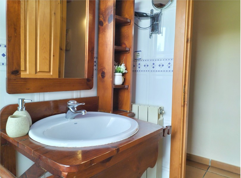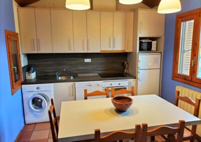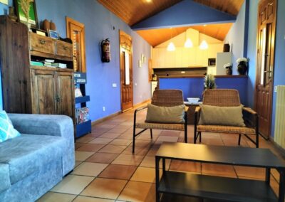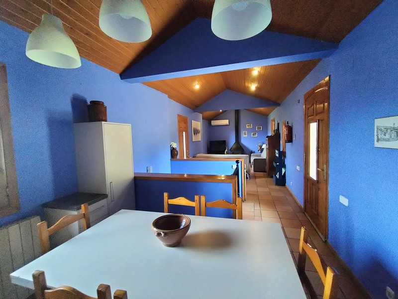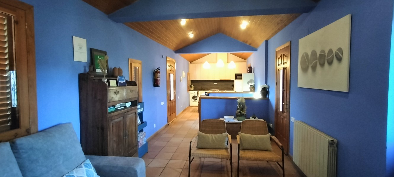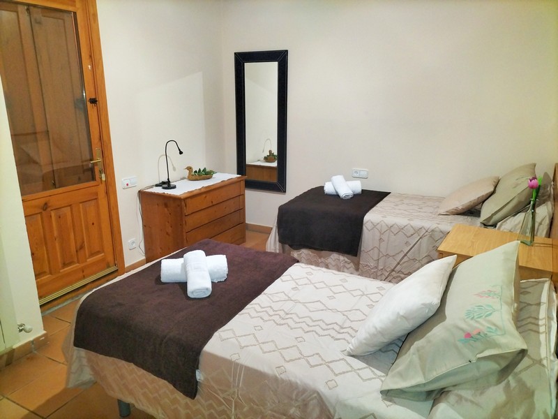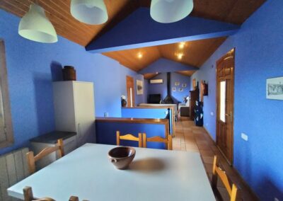 1 habitación de matrimonio con cama de 150 cm , 1 habitación doble con camas de 90 cm y un sofá cama en el salón, 1 baño completo en la zona de habitaciones, cocina-comedor y salón con chimenea.